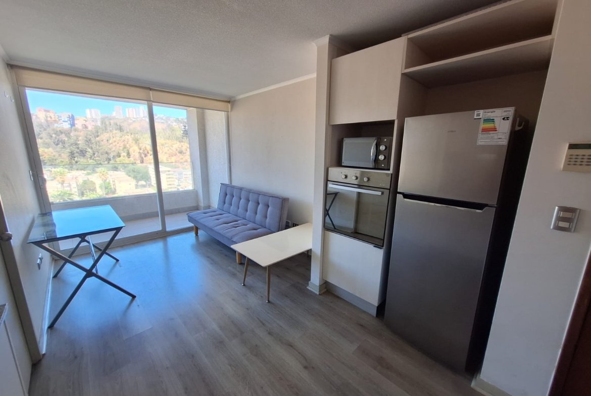 Se arrienda práctico y cómodo departamento amoblado tipo Studio (1 ambiente), ideal para quienes buscan vivir con todo a la mano. Disponible para arriendo por año corrido.